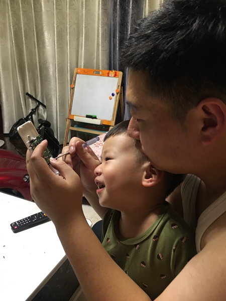 柯夏楠和兒子一起維修小電器