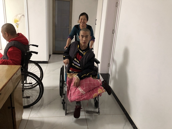 “以前冬天沒暖氣,兩個孩子不能活動怕冷,我給他們每個人都做了30多條棉褲,每天棉褲都像棉被那么厚。他們大小便都不能自理,經常把棉褲、被褥弄臟,我每天給他們換幾條、經常拆洗,但就是這樣,兩個孩子的腿上凍得都是黑色的泡!碧崞疬@些,周素真難掩心酸。“前年我們回遷到花園社區了,冬天有暖氣,孩子也沒那么受罪了!闭f到這里,她又笑了起來。“孩子長大了,我歲數也越來越大,已經抱不動他們了,以后我們歲數大了,可能照顧他們就更難了。”周素真說。