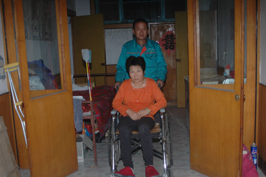 時鐘轉到2006年,這一年,注定對這個家庭是不尋常的一年,又一個災難的降臨讓這個已經十分貧困的家庭雪上加霜。原本健康的妻子因受不了生活的困苦和身體的勞累,患上了神經癱瘓癥,下肢出現嚴重異常,從此臥床不起。為給妻子籌集前期診斷費用,張鼎成四處借債20多萬元,家里僅有的大件就是一臺親戚給的21寸電視,用“家徒四壁”來形容這個家一點不過。盡管張鼎成盡全力為妻子治病,但妻子始終沒有好的跡象。因行動不便,妻子一天中大部分時間只能在床上度過,連最起碼的自理能力都沒有了。為了更好地照顧好妻兒,張鼎成不得不放棄外出打工,每天在家照顧妻兒,給兒子喂飯,為妻兒擦洗身子、洗尿布。與此同時,妻子和兒子高昂的醫藥費和生活費也如一座大山全部壓在張鼎成的肩上。面對這些,張鼎成沒有退縮,他義無反顧地扛起了家庭的重擔。每天收拾完衛生,安頓好妻兒后,張鼎成就馬不停蹄地去自家地里干活,那是目前家中唯一的經濟來源。在這個家里,張鼎成既是丈夫、父親也是“母親”。看到丈夫如此勞累,妻子王智娟內心充滿愧疚和自責,整日郁郁寡歡,以淚洗面,為了不讓癱瘓的妻子著急,張鼎成再苦再累也從不抱怨不埋怨,總是安慰妻子:“你放心,我能干,你們娘倆都能恢復健康”,他總是邊忙活邊給妻子精神上的撫慰。其實,張鼎成這個憨厚的男人心里早有了打算,“就算她娘倆不能動我也要照顧好,一輩子不離不棄。“雖然她生活不能自理,但是回到家能有個人說說話,商量個事兒也行啊”,他經常這樣和鄰居說。是啊,和妻子說說話,對他來講也是一件無比滿足的事情。