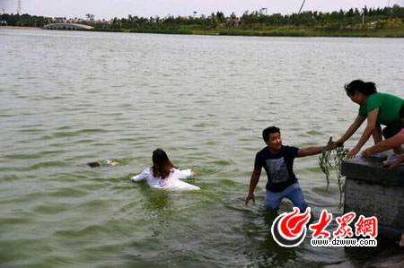 騎行愛好者“軒逸經典闖天涯”當時正在公園練車,“聽到呼救后,我也往那邊趕,但不會游泳,正在想怎么辦的時候,就看到一個女孩一下跳到湖里去了。”