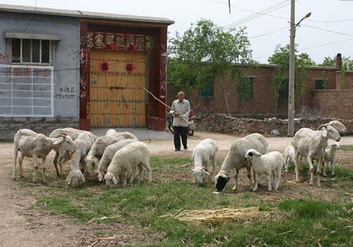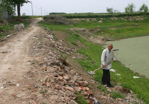 在普通村民眼里,許春生老人非常特殊,一天兩晌堅持放羊,手頭上總拿著一把鐵鍬。村里人介紹,在村西原來有一個2米多深的大坑,到村西的農田干活必須從坑里通過。下雨后,常常會幾天、十幾天、甚至幾十天無法到村西農田干活。如今連接三合莊村西農戶居住區及千傾責任田之間的那條高2尺半、寬3米多的平整路面就是許春生老人一鍬一鍬鋪出來的。為了修通那段80多米的生產路,老人家設計、施工一肩挑,乞丐一樣四處收集生活垃圾,多方打聽哪里在施工、誰家要拆房,不知引來多少異樣眼神,不少村民笑言要看這個現實版的“精衛”最終能填出一個啥模樣的“路”來。
