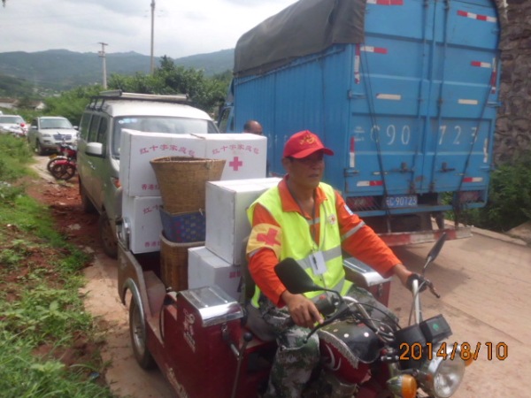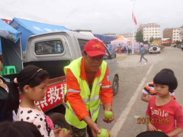 “1、2、3、4……”已經是疲憊不堪的趙龍海數了下,8月13日已經是他在災區救援的第8天了。隨即,他如數家珍地說起這幾天的救援情況:“我6號中午到了魯甸后,先到縣里報到,把物資送到民政局,再在縣里的統一指揮下,被安排在縣城運送物資給部隊、醫院;8號、9號,我被安排往山上的火德紅鎮運送物資,海拔2000多米的山,路兩邊就是懸崖峭壁,二三十公里路要走四五個小時;10號,我又送物資到在震中龍頭山鎮龍泉社區;昨天今天跑小寨。”