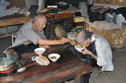 現(xiàn)已81歲高齡的老人,悉心照顧著99歲高齡、雙目失明、行動(dòng)極為不便的母親。雖然他們之間沒有血緣關(guān)系,但母子濃濃的深情卻溢滿兩位老人的心間。