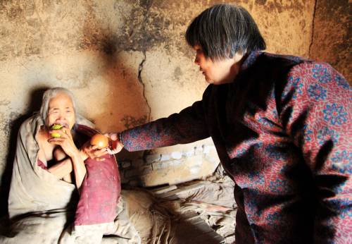丁元臻,莒南縣道口鎮(zhèn)東許口村人。45年前,因?yàn)橐粓?chǎng)變故,小叔子彭洪照變得精神不正常,善良的丁元臻一直盡心盡力地照顧著小叔子,毫無(wú)怨言。長(zhǎng)嫂如母,癡呆小叔是她懵懂的孩子,長(zhǎng)嫂勝母,瘋癲小叔是她一生的掛念。噓寒問(wèn)暖,忍受打罵,掏心掏肺,換來(lái)冷眼。45年風(fēng)霜朱顏改,嫂娘的真情歷久彌堅(jiān)。