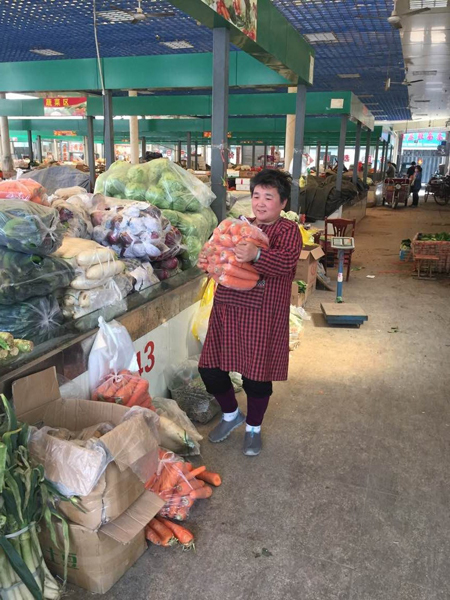 18年后的今天,49歲的李新珍和丈夫李新征經(jīng)營(yíng)著海河農(nóng)貿(mào)市場(chǎng)一個(gè)偌大的菜攤,日子過(guò)得紅紅火火。
