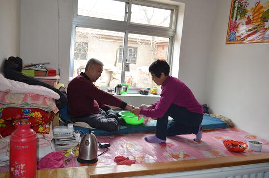 當時的治療費用都是跟親戚朋友借的,家里的生活已經捉襟見肘。為了給丈夫加營養,王業秀便省吃儉用,哪怕有一口好吃的,她也要省下來給丈夫吃。丈夫因為下肢失靈,生活不能自理,她經常是整夜不睡覺,給丈夫按摩、翻身,給丈夫端屎端尿,在她的精心照料下,丈夫終于轉危為安。