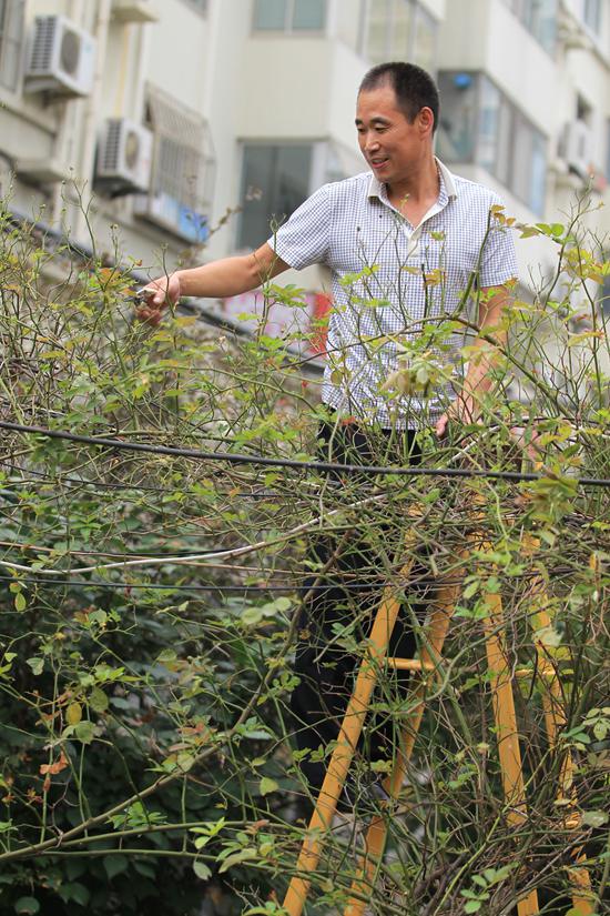 幾年前,李秀現在看到小區的路邊比較荒涼,于是,他買來樹苗,一棵一棵地種,至今已經種了100多棵。為了方便給樹澆水,買了兩個水泵,每天給樹澆水也成了他的習慣。