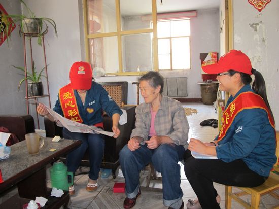 萊蕪公司愛心彩虹使者為孤寡老人讀報解悶
