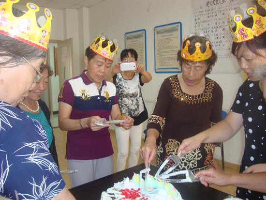 空巢老人生日派對。樂園目前已經在三個社區持續開展生日派對活動,每個月給相關老人舉辦一次生日派對,給他們創造自我介紹或展示才藝的機會。老人們高興地切大蛋糕、吃長壽面,一起唱歌跳舞,義工敬送生日賀卡和禮物。攝像人員趁此抓拍下這些動人的鏡頭,編輯制作成精美的光盤和影集反饋給老人。