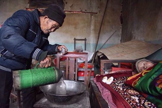 幾十年來,為了照顧妻子,杜元法除了四處尋醫(yī)問藥外從未出過遠(yuǎn)門。“她離不開人,更離不開我,出個(gè)門辦個(gè)事就得快點(diǎn)回來,要不心里老掛念著她。”他說,為了照顧好妻子,受再多的苦也值得。