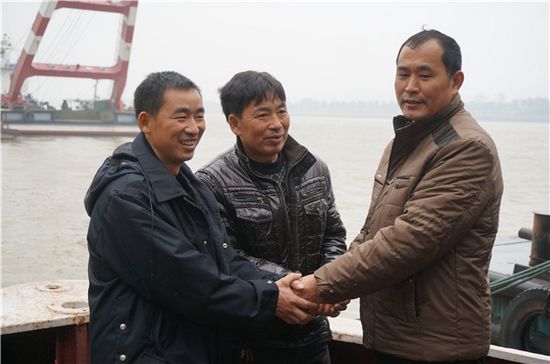 “饅頭大叔”史智勤和“湖北兄弟”握手。