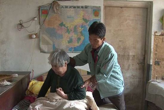 沒過兩三年,妻子的病情又有些加重,當時因高血壓治療的不及時,妻子得了腦血栓,當時她左半邊身子已經完全不聽使喚,生活也不能自理,只能躺在床上等待趙振貴的照顧。趙振貴不僅要照顧妻子的吃、喝、拉、撒,還要洗衣做飯、換洗被褥,做些農活。趙振貴每天都無微不至的照顧著自己的妻子,這一照顧,就是12年。