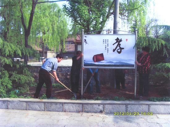 在如今的廣場一側的宣傳欄內張貼著垃圾場和文化廣場的對比圖片。“原來這里蒼蠅滿天飛,臭味熏天,人都不愿意從這里走,王書記來了之后,決心把垃圾場改建,如今不但臭味沒有了,百姓還有了休閑的地方。”孫玉霞說,整個廣場5000多平方米,都是王書記自己設計自己監工完成的。