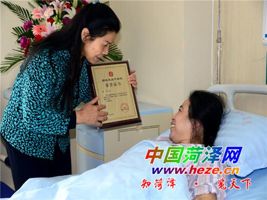 痛苦面前張寧沒有絲毫恐懼和畏難,救死扶傷的大愛之心使她忘記疼痛。“自己的付出換來一個生命的延續(xù),對我來說這是最大的幸福。”張寧的善舉得到社會各界的關(guān)注,期間山東省紅十字會及濟南市紅十字會的領(lǐng)導(dǎo)曾多次看望慰問并送去了“捐獻造血干細胞”榮譽證書。