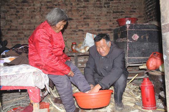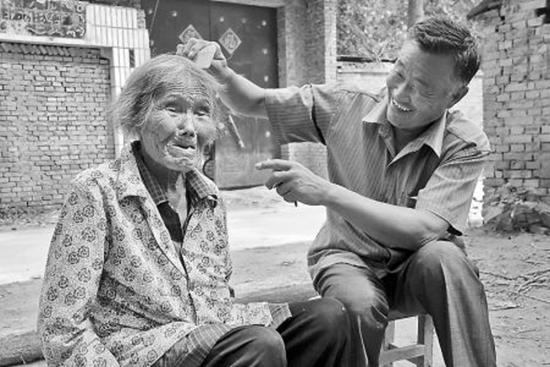 過年時,劉乃現(xiàn)會把雞、魚和肉燉爛燉軟,送到老人灶臺上,初一一大早再送上一大碗餃子,放上一掛鞭炮,讓老人過一個快樂的新春佳節(jié);老人生病時,劉乃現(xiàn)和妻子就會輪流守護(hù)在床前,端水喂藥,擦屎倒尿,直到老人轉(zhuǎn)危為安。有一次,老人痢疾,拉了一褲子污物,劉乃現(xiàn)立馬到就近的集市,買了新衣服。在劉乃現(xiàn)夫婦無微不至的照顧下,百歲壽齡的孫閆氏除了聽力有所減弱,口齒還算清晰,依靠拐杖遛彎串門沒什么問題。