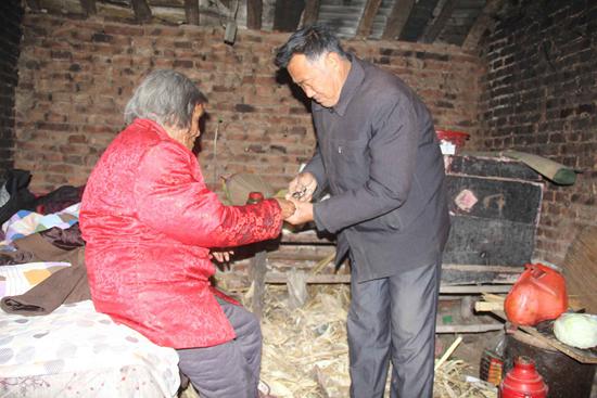 “不知道乃現(xiàn)圖什么,一個孤老婆子無依無靠,還有點老年癡呆,全憑著政府給的一點低保勉強(qiáng)度日。”面對村里人的質(zhì)疑,劉乃現(xiàn)說:“我不能看著她有困難不管不顧,老太太的丈夫是老黨員、老保管,為村集體經(jīng)濟(jì)出了不少力。我作為村里的黨員干部,理應(yīng)照顧孤寡,有錢我出錢,沒錢我出力,我啥都不圖,就圖個心安。”