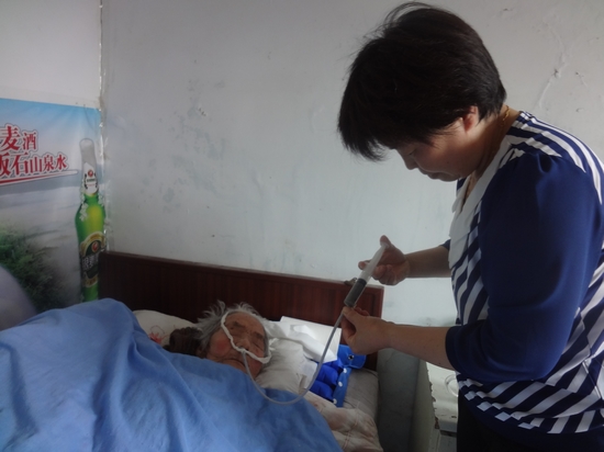 不到一年接連犯病兩次,老人儼然成了植物人。孫桂榮一天三四次通過胃管向老人胃里打雞蛋黃、豆奶粉、核桃粉、小米湯等流食,為老人翻身、擦洗。
