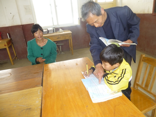 他1984年走上講臺,憑著一顆教師的良心和強烈的責任感,在這塊不尋常的“責任田”里默默地耕耘著,把全部身心精力都獻給了教育事業。2010年,丁德強的妻子查出腦萎縮,幾年來經過多地求診、吃藥,依然阻擋不住惡化的趨勢,目前生活完全不能自理,隨時需要人照看。孩子不在身邊,家里還有臥床的八旬老母需要照顧,丁德強不得已作出決定:帶妻子去學校。