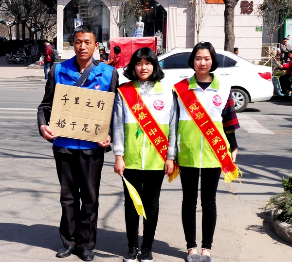 張紅軍右一和山東好人馬懷青左一參加公益活動