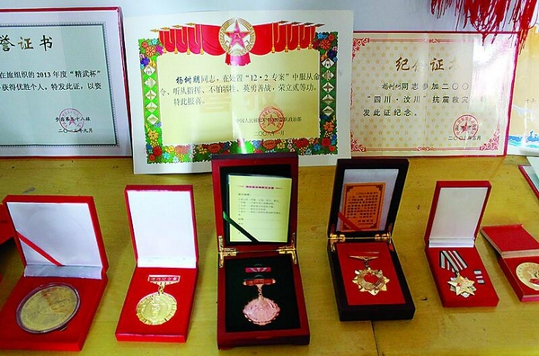 楊樹朋犧牲后,家人翻出這些年來他獲得的喜狀、軍功章,擦拭得干干凈凈,擺放在桌子上,每一個軍功章的背后,都有一段讓全家人揪心的故事。