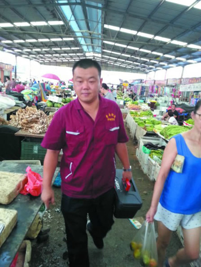 這個“管家”有崇高的敬業精神。發現公司各個市場的照明燈需要人手動控制開關,業戶和市場工作人員忙起來忘記關燈,容易造成不必要的浪費的問題,石佳德報請公司同意后把北市場、大集和海鮮市場的22盞大照明燈全部換成定時開關,這樣不僅節約用電,還減輕工作人員的負擔。據估算,每天市場因此能節省100度電;發現水上公園市場的業戶往往會因為攤位線掉色不清而產生糾紛的問題,石佳德改變傳統的油漆劃線方式,用彩色磚在地上砌出分隔線,不僅清晰而且不易磨損掉色,杜絕了因為攤位分隔而造成的爭執。