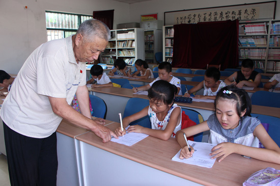 在西程哥莊村,江敦仁負責“關心下一代”工作委員會的相關工作。退休前江敦仁任龍山葛村中學校長,一生從事教育,熱愛教育。退休后,本著對工作的熱情,他向村委申請開辦暑假學生活動基地,主要針對2—6年級的學生免費授課,村委對他的行為大力支持,為他單獨開辟出一間教室,桌椅板凳配備齊全。活動基地的課程內容豐富多彩,涵蓋了文化知識、中西音樂、美術欣賞等,所有的課程都由他親自授課,而且這一堅持就是十多年!起初有人不理解,半信半疑地說:“你傻呀!這么大年紀,還管這么多閑事。”對此,江敦仁總是一笑置之,有人追問起來,他才笑著說:“我不忍心看到村里的孩子在暑假里荒廢學業,更擔心學生沒有人看著,到河里玩耍出事。”簡單質樸的回答,讓人們看到了他的良苦用心。2016年,江敦仁正滿80歲,假期在活動基地上課的孩子也達到80人左右。除了日常授課,他還經常組織學生開展各項豐富多彩的活動,比如帶領孩子們參觀古城亨達孝親文化園,參觀周浩然烈士基地等等,對學生進行愛黨、愛國、愛社會主義教育,進行法制、安全和革命傳統教育。通過假期活動,學生學得了知識,增強了才干,提高了素質,又保證了安全,收到了良好的效果。