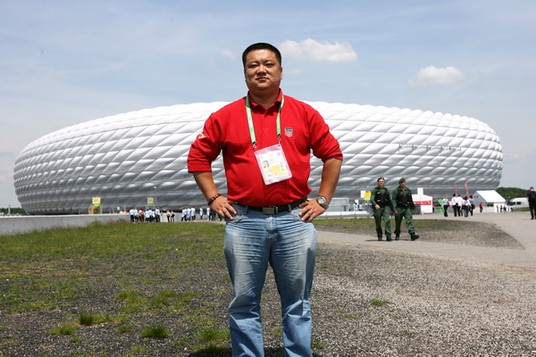 德國世界杯期間馬洪文在安聯(lián)球場前