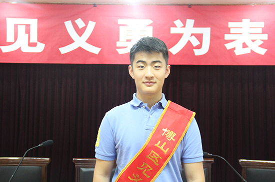 桑正浩,18歲,淄博市第一中學(xué)在讀學(xué)生。2015年夏天,桑正浩同學(xué)奮不顧身跳入三米多深的塘水中,成功救起一名溺水女童,他不顧個人安危,見義勇為,展示了一名新時期高中生文明風尚和精神面貌,也深深感動了周圍的群眾,在學(xué)校和當?shù)厣鐣䝼鳛榧言挕?/span>曾入選“淄博好人榜”、被評為博山區(qū)見義勇為先進分子。