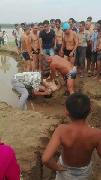 2016年7月10日,沙窩鎮(zhèn)馬集村兩名十二三歲的少年在黃河內(nèi)溺水,東明縣愛(ài)心義工志愿者協(xié)會(huì)水上救援隊(duì)接到救援電話后,及時(shí)趕到事發(fā)地實(shí)施打撈。事發(fā)地地處黃河岸邊,水深淺不一且水流湍急,加上堤壩坡陡、亂石遍布,河水渾濁能見(jiàn)度低,水下還有暗流和漩渦,給搜救工作帶來(lái)很大困難。困難面前東明縣愛(ài)心義工志愿者協(xié)會(huì)水上救援隊(duì)的隊(duì)員沒(méi)有氣餒和退縮,他們11人一組聯(lián)排手拉手在水下實(shí)施地毯式搜索,最后終于將溺亡少年打撈上岸。岸上孩子親屬和鄉(xiāng)親悲痛之余感激不盡。