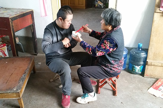 1994年,姜文芝的兒子降生了,給這個原本幸福的家庭更增添了溫馨。沒想到的是,兒子生下來第五天就發燒住進了醫院,一個月后確診為腦癱,這無異于晴天霹靂,使這個家庭陷入了無法言語的困難當中。腦癱兒子沒有了生活自理能力,吃喝拉撒睡都需要有人照顧。于是,姜文芝走到哪里,就把兒子帶到哪里。23年來,姜文芝沒有一天睡過囫圇覺,出去買點兒菜,也得急三火四地往家趕,因為兒子的智力只有四五歲兒童的水平,稍不注意就會發生狀況。有一次,姜文芝到鄰村扒玉米皮,兒子把墻上的鐘、床上的被全摔到地上,門玻璃也給砸碎了,看著家中的一片狼藉,姜文芝只能默默承受。