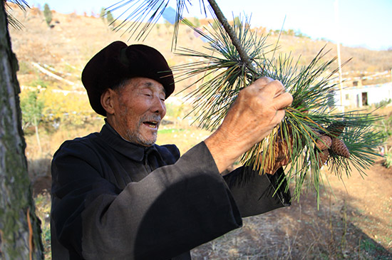 當時的嵯山,除了幾棵雜亂的刺槐,光禿禿的沒有其他樹木。沒有錢購買苗木、雇傭人手,老人就自己培育樹苗,自己挖坑種植。一開始種下的樹經常被人砍了當柴燒,剛開始的兩個冬天,山上的樹就被砍了200多棵,有一年清明節,還燒死了一千多棵樹。雖然很心痛,但他沒有抱怨,又育苗在原來的位置補栽。在嵯山上有一片子午林,那是老人剛上山時,遇到幾個上山迷路的孩子,為了給上山的人指明方向,他就產生了種子午林的念頭。如今,子午林已經成為嵯山上一道別致的景觀,每當有人走到此處,都會對老人肅然起敬。