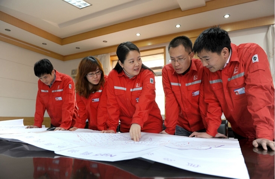 王宏帶領的開發團隊,大多是80后的青年人,思想活躍但經驗不足。在工作中,她常常給他們講老一輩地質人的故事和我自己的成長經歷,讓他們體會地質人辛苦付出的背后更需要一種責任、一種擔當,讓“老”的地質傳統在每一個年輕人心中扎根發芽。王宏所帶的開發室幾乎每天晚上都有人在加班,一遇到重大工作,大伙兒往往顧不上節假日、禮拜天。在技術上,王宏堅持導師帶徒,實行優秀人才“倒金字塔”梯隊建設,即將人員劃分為業務骨干、中堅力量和隊伍塔基,通過一對一傳幫帶,開展建模數模、動態分析、潛力分析會等,讓青年技術人員挑起重任并形成有序接替。幾年來,王宏所帶的開發室取得局級以上科研成果80余項,其中“館陶組井網加密技術”榮獲中石化技術創新一等獎,團隊榮獲“山東省十大創新巾幗文明崗”榮譽稱號。