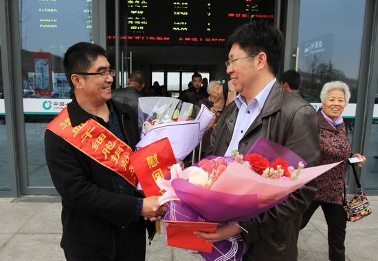 2017年3月24日下午3時,在威海文登區火車站,威海市紅十字會、文登區紅十字會、威海聯通文登分公司的工作人員以及眾多媒體記者都在等待一名志愿者的光榮回歸,他就是二次捐獻造血干細胞的志愿者周經海。3點29分,周經海從出站口緩緩走出,臉上洋溢著微笑。面對大家的關心和問候,周靜海平靜地說:“既然答應了,咱就要幫到底,今天總算兌現了承諾,現在最大的心愿就是希望孩子能盡快好起來,健健康康的長大”。