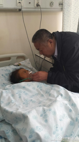 時間一天天過去,妻子因重度營養(yǎng)不良身體變得非常衰弱,但在他無微不至的照顧下,妻子的生命在堅強(qiáng)的延續(xù)著。2015年6月,經(jīng)推薦他又帶著妻子到北京市門頭溝區(qū)醫(yī)院救治,經(jīng)過3個多月的搶救支持治療,情況雖有改善,但肚子上的腸液一直漏,每天有2000多毫升,反復(fù)膿腫流膿。因保守治療沒法愈合,最終于9月28日再次做了探查、小腸與結(jié)腸吻合手術(shù)。這期間,醫(yī)院多次下達(dá)病危通知書,但他始終不離不棄。他一邊悉心照顧,用真情的語言一遍遍呼喚著昏迷的妻子,一邊繼續(xù)借遍親朋好友尋求援助,籌借治療費用。同時,因為供血緊張,他每隔幾天就去血庫獻(xiàn)血來保障妻子的輸血治療。在他不離不棄的溫情呼喚和精心照顧下,妻子慢慢的醒了過來,但因為借遍親戚朋友實在也接濟(jì)不上治療費,他就帶著妻子回到了當(dāng)?shù)蒯t(yī)院,每天靠著輸營養(yǎng)液維持著生命,但他從來沒想到過放棄。妻子因不能喝水導(dǎo)致嘴唇干裂,他就用棉棒蘸著水給妻子濕潤嘴唇;妻子出現(xiàn)了失憶癥狀,經(jīng)常說胡話,他就把妻子當(dāng)作小孩兒一樣逗她開心,并拿著原來的照片一遍遍給妻子看幫助回憶;妻子大小便失禁,他就給妻子端屎端尿,換衣洗褥,每天給妻子擦拭身體……他用自己真摯的愛、純潔的情和無怨無悔的悉心照料,多次把妻子從死神手里拽了回來,妻子的主治醫(yī)生在個人微博上說他“用‘愛’創(chuàng)造了生命的奇跡!”