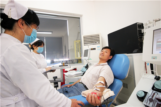 退伍參加工作后,單位組織無償獻血,每次吳勇都是第一個報名,獻血量也由一年一次、每次200毫升逐,步增加到一年2-4次、每次400毫升。后來,他覺得僅僅靠單位組織的無償獻血并不能夠最大限度救助他人,他又開始參加成分血的捐獻,每次800-1600毫升,每年捐獻次數高達10-15次。