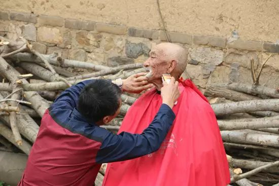由于經常理發,周邊村里幾個老人,誰該理發了,這次少了誰,楊淑忠心里都有個數。“上次就沒見著老王,也不知道他竄到哪里去了。”說話間,“老王”蹣跚著從胡同里出來了,楊淑忠嘴里的“老王”,小時候得過大腦炎,言語不清,直流口水,平時靠撿廢品為生,從來沒有像樣理過發。有次楊淑忠碰見后,苦口婆心連哄帶勸幫他理了發,一來二去結下深厚的感情,每次來村理發“老王”都來湊個熱鬧,也許在“老王”的心里楊淑忠早已是自己的親人。由于無法用語言表達,他總是艱難的笑著沖楊淑忠豎大拇指,也許這樣的贊美才是最樸實,最有力量的。