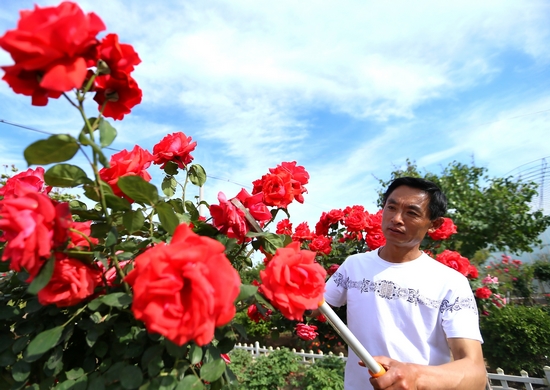 隋普霖在“公益微花園”里管理月季花。