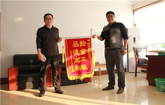 失主做了一個“品德高尚拾金不昧”的錦旗,找到了我們新甫辦事處,聯系了單位領導,親手把這個帶著榮益的錦旗送到了李軍手里,感謝的話說了夠一籮筐,只為表達那一種失而復得的激動之情和遇見好人的幸運之情,這時候李軍就露出那憨憨的笑容,托詞都不知道說什么好,他覺得就是做了一件舉手之勞的事情,得到失主這樣的感謝反而有點承受不起。