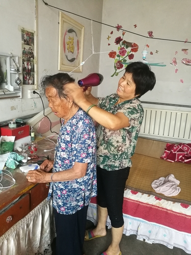 給高齡婆婆洗頭吹發