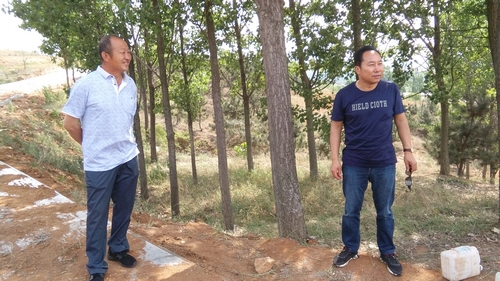 高義森(左一)在查看自己幫助小屯村修筑的道路