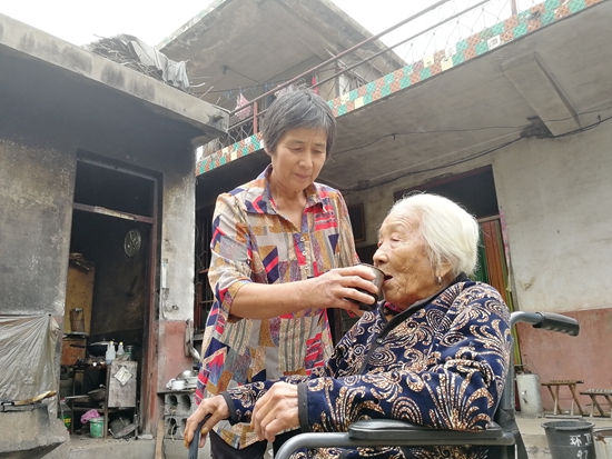 七年前,婆婆因為一次意外摔傷后,腿部摔傷,癱瘓在床,在加上80多歲的高齡,身體狀況每況愈下,生活起居完全不能治理,照顧婆婆的重任也就落在了任士云身上。自從婆婆癱瘓在床以后,任士云悉心照料著她的生活起居,每天的喂飯、擦洗等都是必不可少的,而每當看著婆婆坐久、睡久了難受,沒有多少文化水平的她,專門學習了按摩技能,每天早晚給婆婆做半個小時的腿部按摩。同時,為了能讓婆婆的身心健康,任士云專門花了幾百元錢給婆婆買了個小型輪椅,天氣好的時候推著婆婆出來曬太陽,散散心,和鄰居聊聊家常,讓婆婆的生活不那么枯燥、乏味,讓更多的快樂安撫著身體上的殘疾。