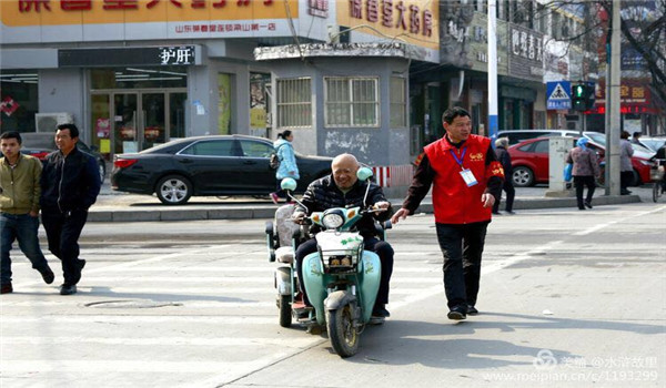 加入大義社工以來,郝吉喜先后任梁山大義社工交通文明服務隊的副隊長、救援隊副隊長。一年四季,無論刮風下雨,在梁山一中路口,總會看到郝吉喜指揮交通的身影。他身穿大義社工紅馬甲,對行人進行勸導,對年邁的老人進行攙扶,他用自己的行為一點一滴的感動著行人。