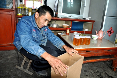 此外,從1992年開始,他就跟著自家叔叔養蜜蜂,漸漸地,他對蜜蜂養殖產生了濃厚興趣。從剛開始的22箱到現在的106箱,收益也日漸豐厚。2016年,通過縣、鎮電商培訓,他學習了網絡銷售,并注冊了淘寶店“沂蒙峰味”,還從微信朋友圈上進行銷售,從此開始了線上線下同步銷售模式,把純正的沂蒙山蜂產品銷售到了全國各地,一年下來滿打滿算能收益20余萬元。為了擴大產量和集約技術,2016年他聯合本鎮15戶蜂農成立了虎頭山養蜂專業合作社,專門為附近養蜂的村民提供技術和銷售服務。2017年王士國又新發展了十畝蘋果園,準備開拓新的致富領域。