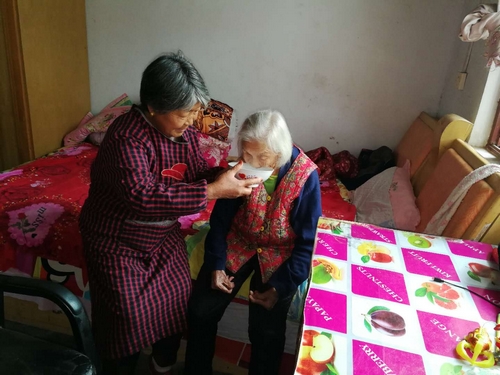 慈眉善目的岳煥成今年也66歲了,她有嚴重的骨質增生毛病,一疼起來就痛苦不堪。10年多來,沒白天沒黑夜地照顧婆婆,作為同樣步入老年人行列的她沒有半點怨言。去年春天,由于疼得實在沒法走路了,才在丈夫和孩子的勸說下離開瞎婆婆,不得不到聊城醫院看病。“我不是不想去治病,只是我去看病了,別人照顧婆婆我不放心,怕有個磕磕碰碰的。”前些年,她婆婆逢人便說:“俺家煥成比親閨女都好,我這本來早就該入土的人啦,現在能活到90,這是俺多大的福分呀。”現在盡管婆婆有時犯糊涂,但眼神里依然流露著對岳煥成的依賴。