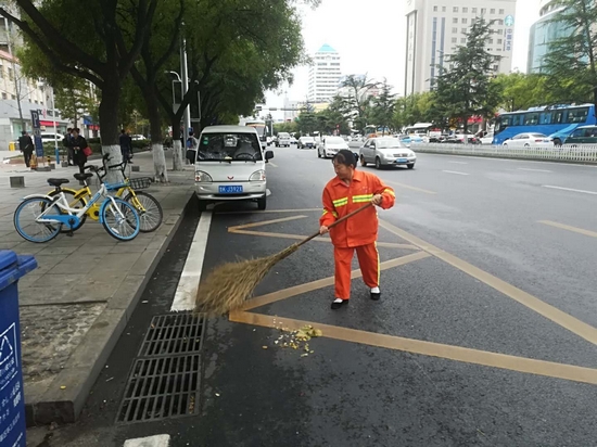 她記得要來環衛局上班的時候,衛生保潔隊隊長說過的一句話,就是“要做好一年365天不能歇的準備才能干環衛”,就是這一句話,開始了她酸甜苦辣的環衛人生。她負責的這段路,人多、車多、廢棄物多,一天幾乎不能有任何閑暇時間。最苦最累的時候是夏天,大量的國槐花開過之后飄落到人行道板上,像一層薄薄的雪花,需要不停地來來回回清掃,如果不及時清掃,路人將國槐花踩碎后就將人行道板污染。
