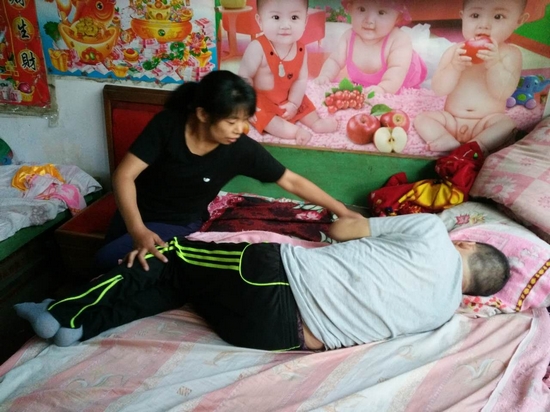 “夫妻本是同林鳥,大難臨頭各自飛”,這句俗語在劉溫香身上并沒有應驗。劉溫香的丈夫李桂福在今年正月初四走親戚回家后,突發腦出血暈倒在地,被送往醫院。現在七個多月過去了,李桂福依然不能下床走路,生活不能自理。面對躺在病床上的丈夫,劉溫香選擇陪伴。在這七個多月的時間里,劉溫香衣不解帶,日夜守在病床邊照顧丈夫,喂飯、照顧大小便、擦洗身體等等,人瘦了整整一大圈。為了不讓丈夫的肌肉萎縮,她每天還幫丈夫按摩、拍打他的肢體,并不停地跟他說話,鍛煉他的語言表達能力。面對巨額醫藥費,丈夫李桂福多次要求放棄治療,劉溫香總是耐心的勸慰丈夫,不要放棄,錢沒有了可以再賺,身體是最要緊的。