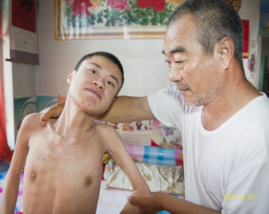 為了給張鑫治病,一家人輾轉國內多家著名醫院,醫生給出的答案都是很難根治。2010年,張鑫父親張剛了解到中國人民解放軍第四六三醫院治療該病有較好的效果,但是做手術需要20萬元的費用,這對并不富裕的張家來說負擔沉重!最后,爺爺張木光拍板——做手術!即使有萬分之一希望也要做!沒有足夠的錢,張木光全家借遍了親戚朋友,終于湊齊了20萬元的手術費。手術后,張鑫還需要半年的康復治療,每天服藥,康復訓練,康復費用又加重了張家的擔子。然而,上天并沒有給這個堅強的家庭帶來好運,張鑫手術治療后,病情沒有根本好轉,隨著年齡增長,肌肉持續萎縮、行動嚴重不便,直到大小便無意識、精神異常、臥床不起。