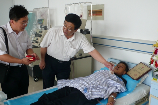 身邊的人都清楚,何洪軍在家中是個大孝子、好丈夫、好父親,家有八十多的父母,父親幾年前做了大手術,妻子工作不穩定,兒子剛參加工作,應該說他是家中的頂梁柱。只要一有時間,他都會陪在父母的身邊。他還自學了基本的保健按摩技法,經常為父母進行按摩。妻子工作經常很晚回家,他也就經常晚上騎車接送妻子上下班。他還經常教育孩子,要好好學習,努力工作,關心社會,努力做一個對社會有用的人才。就在捐獻造血干細胞期間,他只把捐獻的消息悄悄告訴了妻子,他們考慮再三,決定先瞞著年邁的父母,在去濟南的頭一天,他謊稱自己去濟南開會,但是在他到濟南省立醫院的第二天,還是被細心的父親從新聞里得到了實情,兩位老人在電話里埋怨了兩句不該瞞著他們,同時表示這是救人的善事,應該早給家里說,父母是不會阻攔的。當放下兩位老人的電話,他不禁熱淚盈眶。讀大學的兒子更是為他的舉動感到自豪和驕傲。