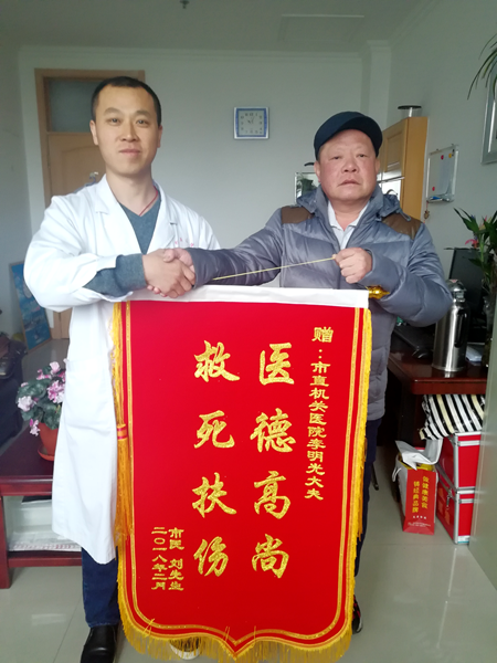 連續(xù)按壓幾分鐘后,老人慢慢醒了過來,意識逐漸恢復(fù)。李醫(yī)生又馬上向圍觀群眾要來了速效救心丸給其服下;擔(dān)心急救后老人受涼微循環(huán)不好,他又將身上的羽絨服脫下蓋在老人身上。清晨山上只有零度左右,而且風(fēng)很大,但他卻絲毫不在乎,直到等來了救護車,與隨車醫(yī)生交接完畢,他才轉(zhuǎn)身默默離開,整個救助過程中都沒有透露姓名,還是現(xiàn)場一位熱心的阿姨追問同行的一位山友,才知道他是煙臺市直機關(guān)醫(yī)院的一名醫(yī)生。
