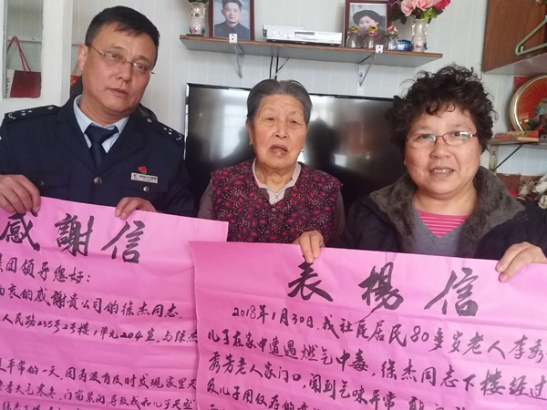 1月30日中午,徐杰外出回家經(jīng)過二樓樓梯時,聞到一股奇怪的味道,徐杰覺察出異常,安保職業(yè)警覺,促使他下意識地趕緊敲鄰居李秀芳老太的家門詢問,門剛一打開,李阿姨的兒子秦云盛還沒來的及和徐杰說明情況就暈倒在地。往屋內(nèi)一看,李秀芳已經(jīng)暈倒在陽臺,這時煤氣灶上放著的高壓鍋還在“吱吱”地響,徐杰沖進(jìn)廚房連忙關(guān)好開關(guān),并撥打120急救電話,還聯(lián)系了包括于桂英在內(nèi)的其他三位鄰居。李秀英和秦云盛被徐杰等鄰居們護(hù)送到醫(yī)院,趕來的鄰居們都幫忙跑前跑后,徐杰還幫忙墊付了2千多元的醫(yī)藥費(fèi),還幫忙買來被褥取暖。徐杰等人回到家中已經(jīng)下午4點(diǎn)多。據(jù)了解,當(dāng)時如果不是徐杰及時發(fā)現(xiàn)并處理,李秀芳和秦云盛都會有生命危險。島城各大媒體對此事進(jìn)行了宣傳報道。